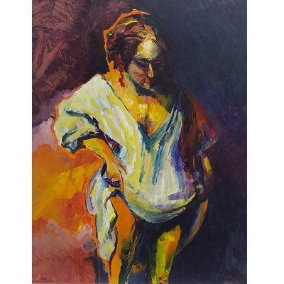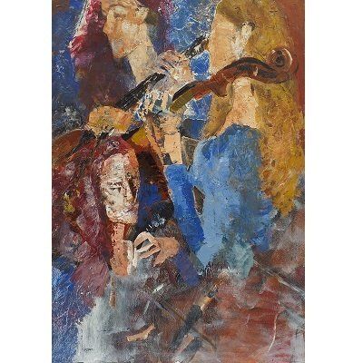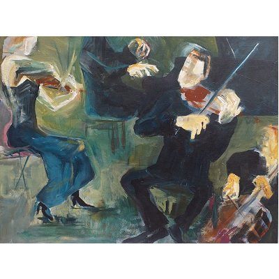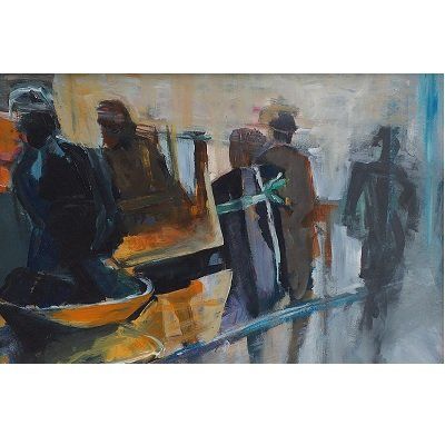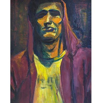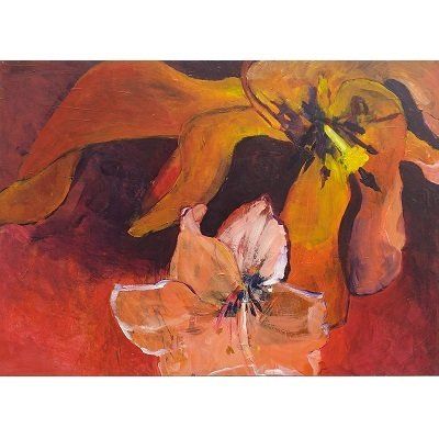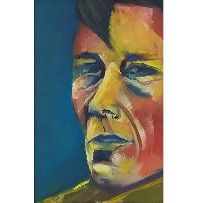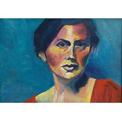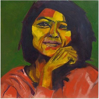 Hun foto's vond ik zeer uitnodigend om te schilderen: het accent ligt meer op de expressie en minder op een exacte weergave van de realiteit. Hierin heb ik mijn eigen kleuren en toets gebruikt.